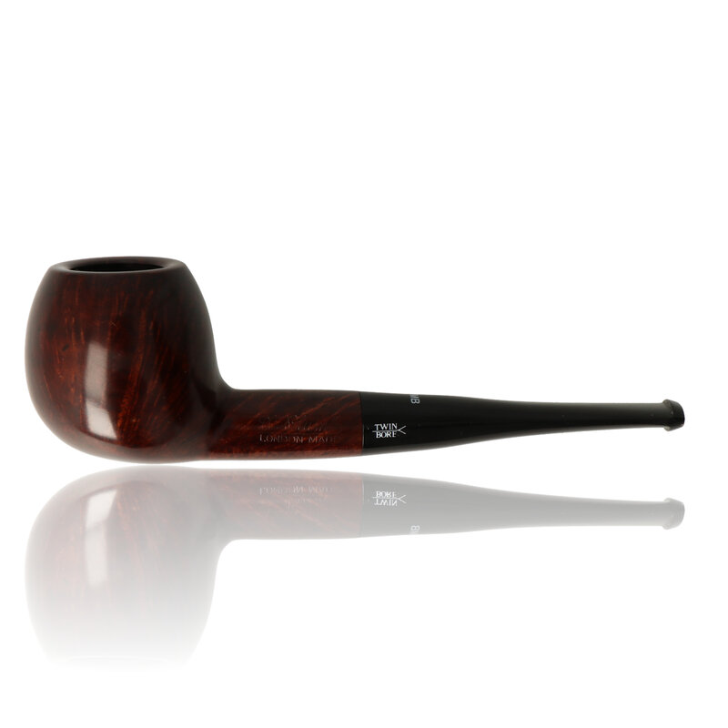 The Dr Plumbs 95291 is a traditionally shaped and sized, London made, briar pipe polished with a natural, deep brown tint. As the name gives away it is a smooth, Apple shaped Briar bowl with a straight stem. The length of the stem and thicker briar wall prevents overheating therefore providing a cooler smoother smoke. The Twinbore is named for its distinctive twin bore construction, which features two air channels or "bores" running through the stem. This innovative design promotes a cool and even smoke, ensuring a consistently enjoyable smoking experience. The Twinbore series often offers a variety of shapes and finishes to cater to individual preferences. Whether you prefer a classic billiard or a more unique design, there's likely a Twinbore pipe that suits your taste.