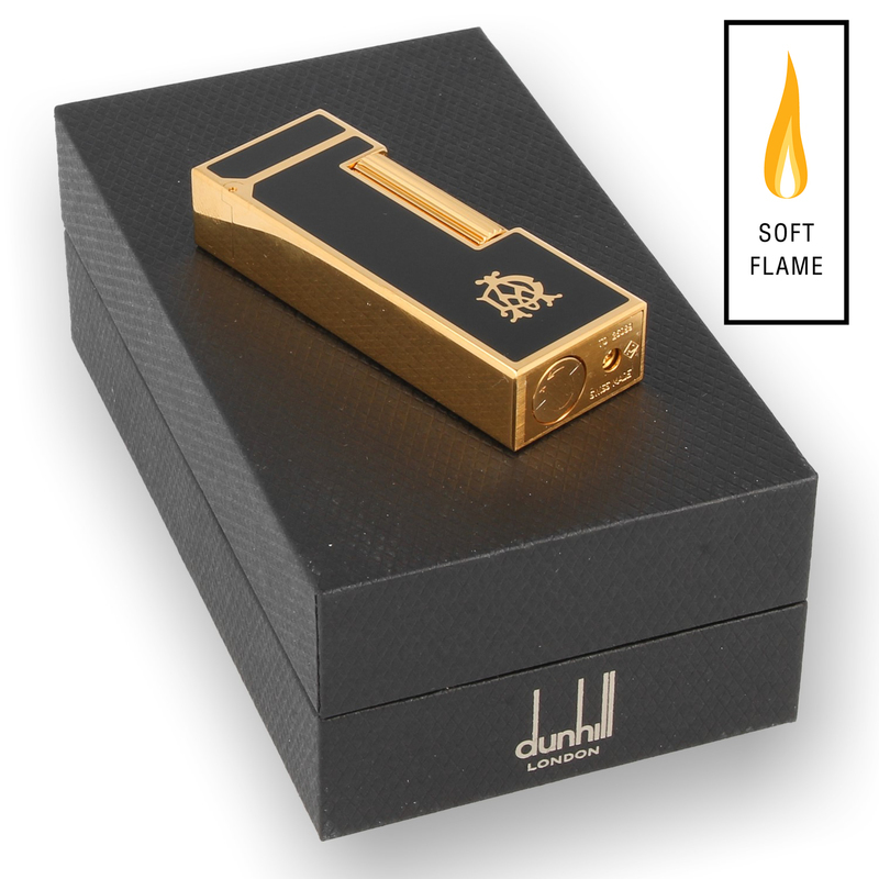 RLR2401 Dunhill Rollagas 'AD' Logo Black Lacquer: A truly stunning Gold plated Dunhill with a contrasting, luxurious, Chinese Black Lacquer insert enhanced further with an embedded Gold Plated Alfred Dunhill emblem. If there is one thing Dunhill get right every time it's style, class and elegance.