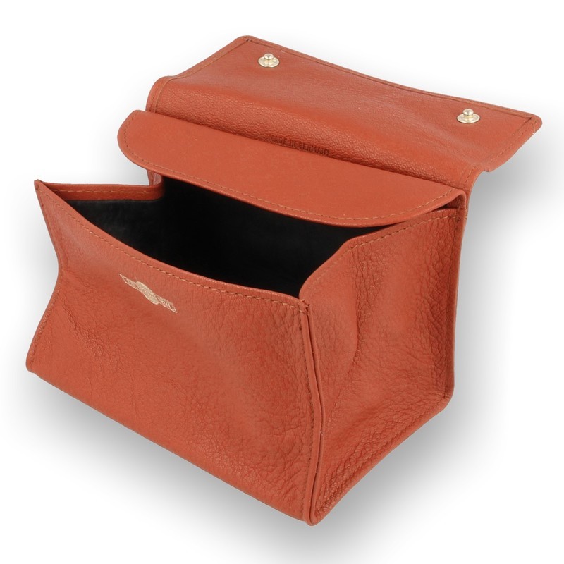 Alfred Dunhill Whitespot Leather Tobacco Pouch PA2026: The Alfred Dunhill Whitespot PA2026 is a luxury, fold up leather tobacco pouch with press stud fasteners. The pouch cleverly opens into box shape providing easy access and preventing spillages. The main flap of the pouch can be used for preparing tobacco and a second smaller flap covers the tobacco compartment when closed forming a tight seal to keep your tobacco fresh. As with all the whitespot range the pouch is finished with an embedded white ball on the exterior and a Gold embossed white spot logo inside the pouch.