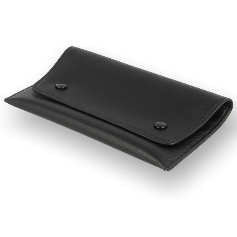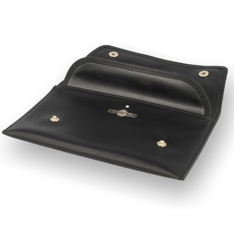 Alfred Dunhill White Spot Leather Tobacco Pouch PA2001: The PA2001 is one of the most popular pouches as a simple neat tobacco pouch that stores your Tobacco without any added compartments or zips. This keeps it nice, slim and pocket friendly. When open the flap features as a handy area for preparing your tobacco saving on spillages. The flap is secured using two quality press studs that hold an internal flap over the tobacco compartment to aid in keeping the tobacco fresh. As with all the whitespot range the pouch is finished with an embedded white ball and a Gold embossed white spot logo.