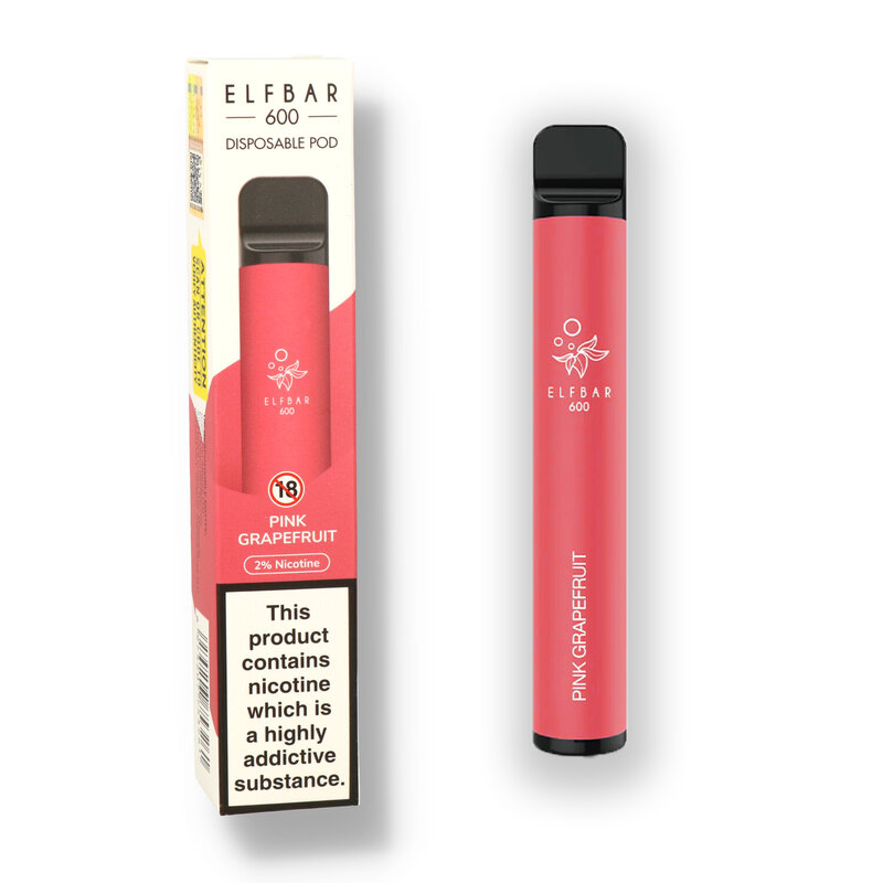 Elf Bars The Elf bars have taken the vaping world by storm due to their incredibly easy to use format. No more fiddling with messy eliquids and coils, just open the pack, remove the silicone covers on the top and bottom and start vaping, once it is finished just throw it away! It's small format does not sacrifice on performance, the 550mAh battery provides you with up to 600 puffs which is the equivalent of 50 cigarettes! Available in a plethora of flavours to suit any palette from creamy tobaccos to sweet and fruity and fresh minty menthols. And the smart heating method gives a much more natural taste compared to most other leading brands. The Pink Grapefruit is a refreshingly tart citrus flavour of Pink Grapefruit