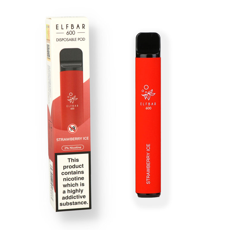 Elf Bars The Elf bars have taken the vaping world by storm due to their incredibly easy to use format. No more fiddling with messy eliquids and coils, just open the pack, remove the silicone covers on the top and bottom and start vaping, once it is finished just throw it away! It's small format does not sacrifice on performance, the 550mAh battery provides you with up to 600 puffs which is the equivalent of 50 cigarettes! Available in a plethora of flavours to suit any palette from creamy tobaccos to sweet and fruity and fresh minty menthols. And the smart heating method gives a much more natural taste compared to most other leading brands. The Strawberry Ice is a blend of juicy ripe Strawberries with a menthol kick.