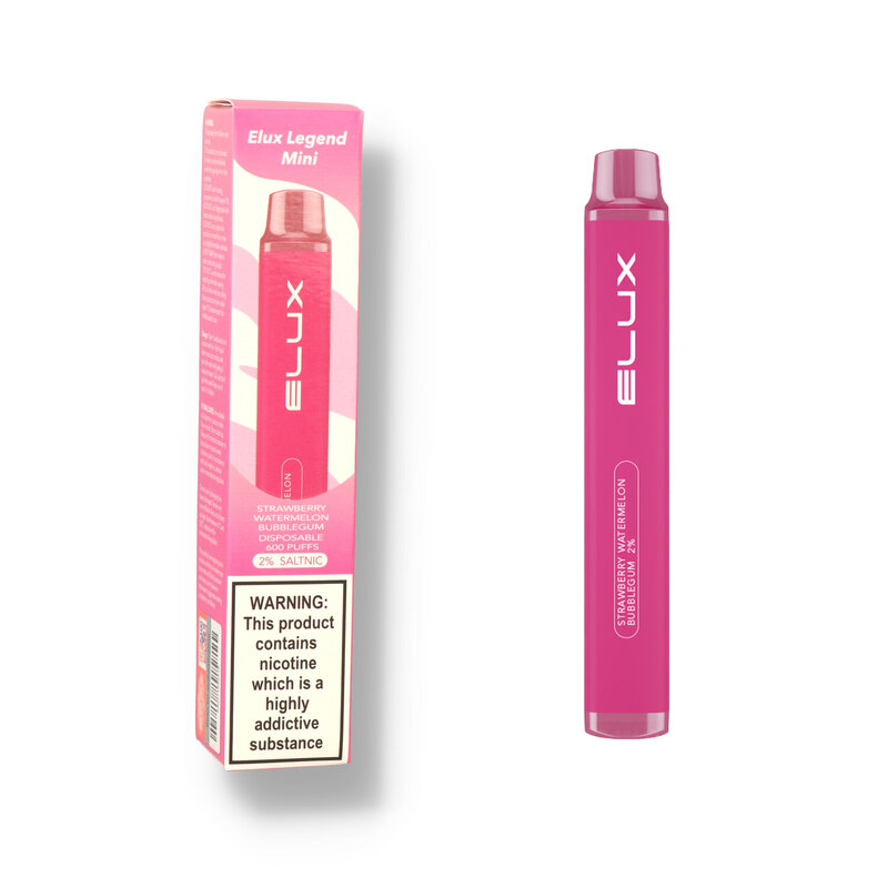 Elux Legend Mini Disposable Vapes have been taking the vaping world by storm due to their incredibly easy to use format. No more fiddling with messy eliquids and coils, just open the pack, remove the silicone covers on the top and bottom and start vaping, once it is finished just throw it away! It's small format does not sacrifice on performance, the 500mAh battery provides you with up to 600 puffs which is the equivalent of 50 cigarettes! Available in a plethora of flavours to suit any palette from creamy tobaccos to sweet and fruity and fresh minty menthols. And the smart heating method gives a much more natural taste compared to most other leading brands. The Strawberry Watermelon Bubblegum takes ripe strawberries, juicy watermelon and that classic bubblegum taste to produce a super sweet and juicy flavour.