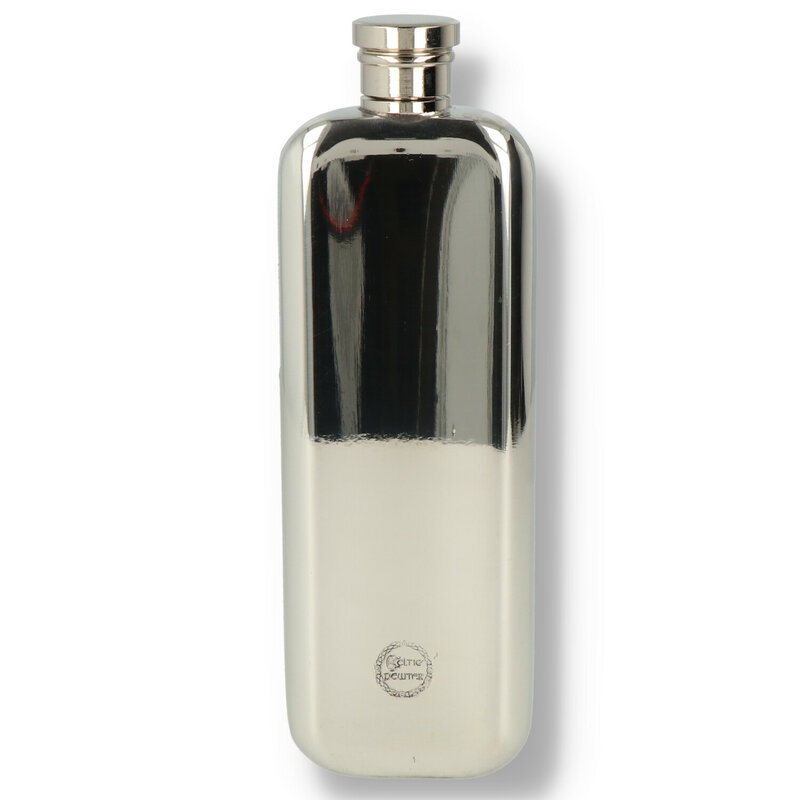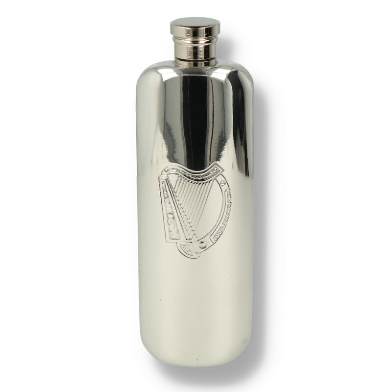 Hip Flask It is often the case that the traditional is still the best, and that argument can definitely be made about this simple and elegant pewter hip flask. Lovingly manufactured from the highest quality lead free pewter, this flask will stand the test of time without tarnishing. The plain body of the flask has a highly polished mirror-like finish, which is perfect for the addition of your own choice of engraving, The flask is finished with a Celtic harp design and is supplied with a cream and black presentation box and funnel.