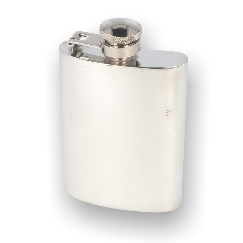 Hip Flask It is often the case that the traditional is still the best, and that argument can definitely be made about this simple and elegant pewter hip flask. Lovingly manufactured from the highest quality lead free pewter, this flask will stand the test of time without tarnishing. The plain body of the flask has a highly polished mirror-like finish, which is perfect for the addition of your own choice of engraving, and the simplicity and utility of the flask is completed by the captive top that is attached to the flask via a hinged arrangement and is also supplied with a cream and black presentation box and funnel.