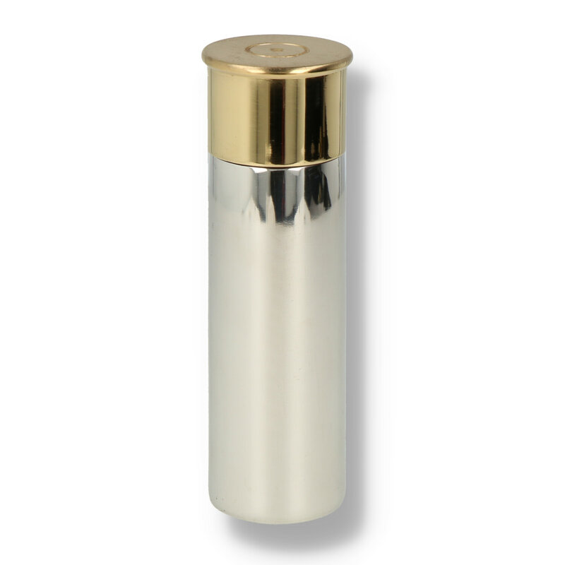 Hip Flask English Pewter Company are always looking to produce the most stylish and innovative versions of pewterware, and that is certainly what they have done with the SF667 four ounce hipflask. This 12cm by 4cm flask is beautifully styled to resemble a shotgun cartridge, making it the ideal gift for someone who enjoys countryside sports, or who just appreciates the beauty and style of this wonderful flask. The screw top lid of the pewter hip flask is composed of brass and can also double as a lid, whilst the mirror-like finish of the body is perfect for the addition of your own choice of engraving. The beautiful flask is supplied complete with an elegant cream and black English Pewter Company presentation box and funnel.