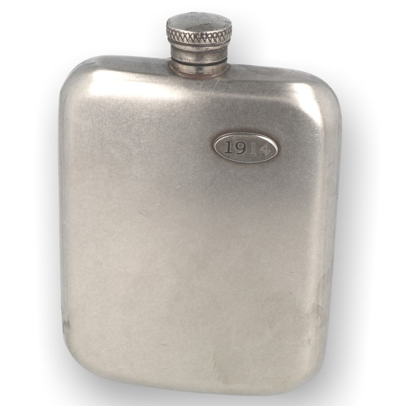 Hip Flask Pewter is the fourth most precious metal in common usage, and sometimes the best way to display the beauty of the material is in a stylish, elegant and understated manner, as is beautifully demonstrated by this pewter hip flask. Engraved in the top corner is the commemorative date of 1914, underneath is a space available for your own personal message engraved into the flask. The gorgeous gift will not rust or tarnish over time and really is the perfect example of beautiful design and craftsmanship coming together and is also supplied with a cream and black presentation box and funnel.