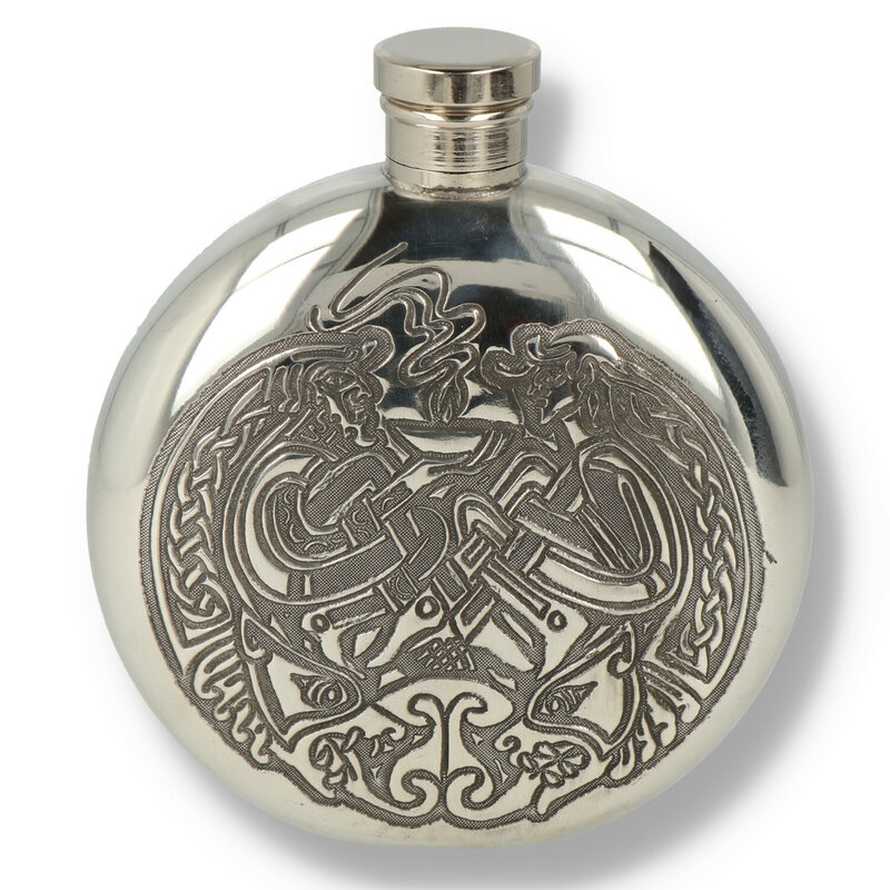 Hip Flask Less sometimes really is more, and that is never clearer than when you look at the beautiful SF248 pewter hip flask. With no complicated design features, this round shaped hip flask with carved Celtic design exudes elegance and class and comes complete with captive top style hinged lid. What's more, being plain makes this the ideal hip flask for adding an engraved message of your own choosing which can turn it into a truly unique and personal gift for any occasion. Composed of high quality, lead free pewter, the flask will not tarnish over time and is also supplied with a cream and black presentation box and funnel.