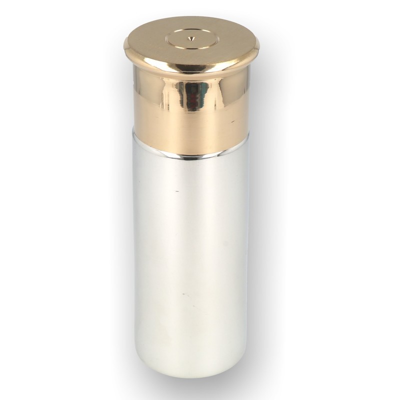 Hip Flask English Pewter Company are always looking to produce the most stylish and innovative versions of steelware, and that is certainly what they have done with the CS242 six ounce hipflask. This 15cm by 5cm flask is beautifully styled to resemble a shotgun cartridge, making it the ideal gift for someone who enjoys countryside sports, or who just appreciates the beauty and style of this wonderful flask. The screw top lid of the hip flask is composed of brass and can also double as a lid, whilst the mirror-like finish of the body is perfect for the addition of your own choice of engraving. The beautiful flask is supplied complete with an elegant cream and black English Pewter Company presentation box and funnel.