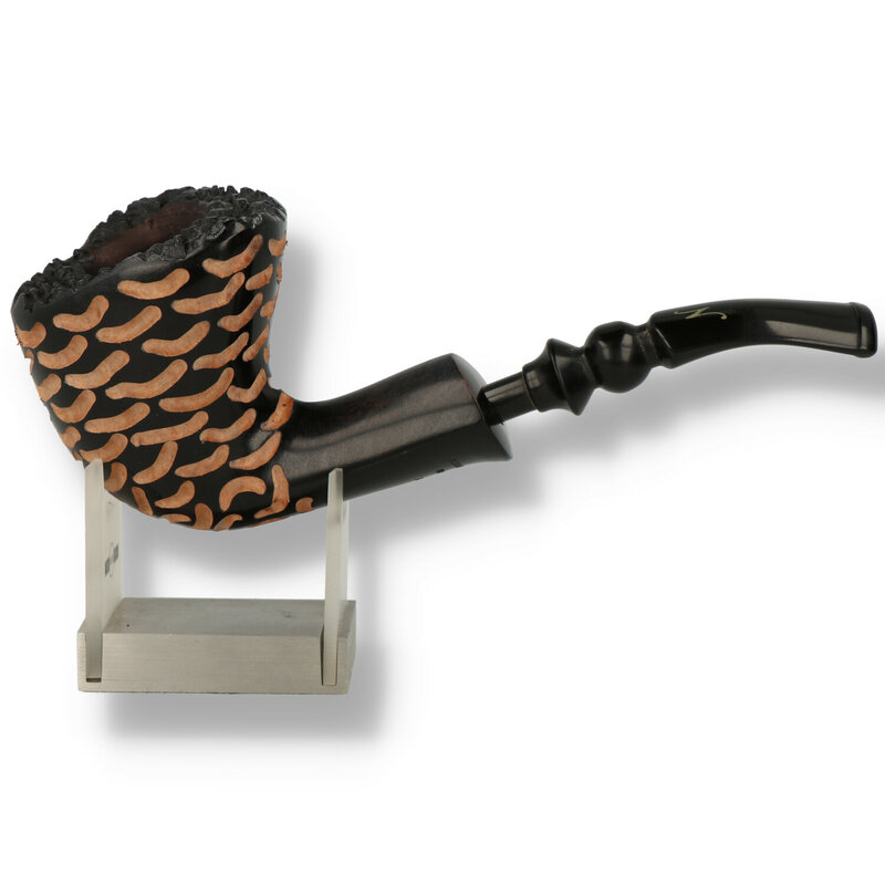 Nording Freehand Seagull Briar Smoking Pipes: Freehands are often something of a speciality to Pipe makers as they take time, great skill and experience to produce well and this isn't as profitable as mass production of standard shapes. However it is something Erik Nording and his carvers have perfected over the years with the majority of their offerings being one-off freehands. As with most freehand pipes the Nording Freehands are larger than average pipes with good deep bores perfect for a long evening in front of the fire. The briar walls tend to be thick so the pipe will stay cool and yet they are remarkably light due to the quality of the Briar Erik Nording uses. The Freehand Seagull takes high quality briar with a plateaux rim which, unlike most of the nording freehands is given a high gloss black stain before being rusticated with a unique seagull carving.