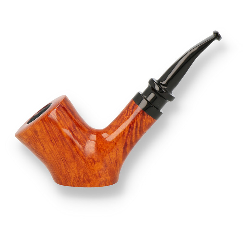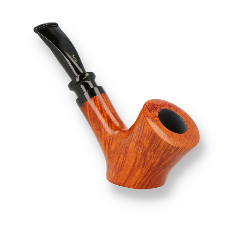 Nording Royal Flush: All of Erik Nording's pipes are works of art, and when art and functionality come together, you know you have something that is more than a sum of its parts. The Royal Flush pipes are no exception to this. The range has 6 unique and beautiful shapes cut across 5 different groups, Jack, Queen, King, Ace and Joker. To make each pipe unique Erik works with many different colours, finishes, bands and different interchangeable mouthpieces. The Joker pipes are the most highly prized of the Royal Flush Range, This jauntily angled free standing poker has a stunning flame grain that has been accentuated by a high gloss natural light stain, finished with a black saddle stem and matching band.