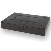 This cedar lined humidor is coated in a black leather finish, perfect to take on the go with you and store a few of your favorite smokes whilst keeping them fresh and ready to smoke!