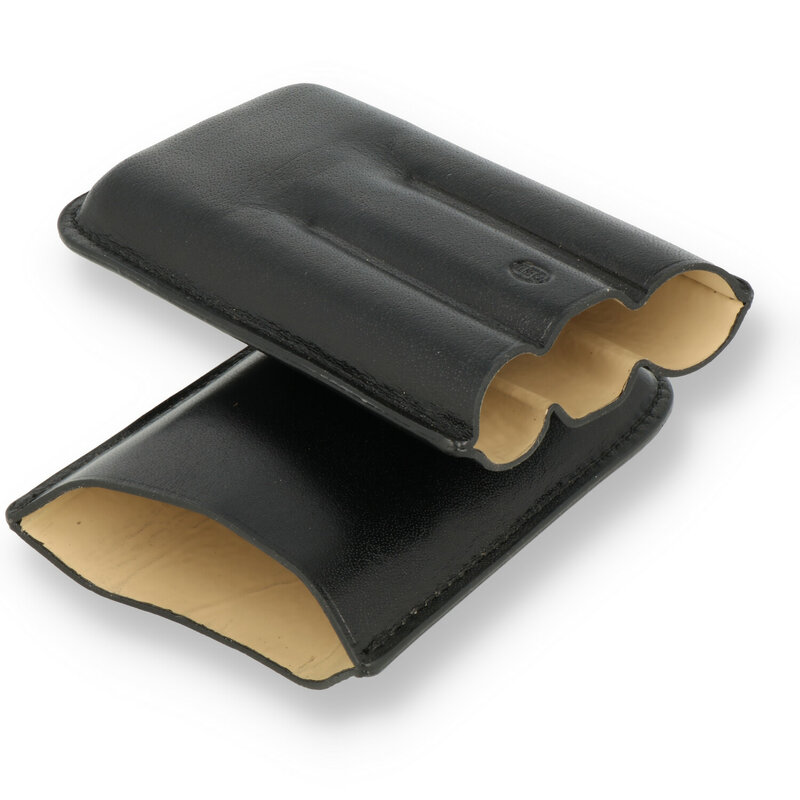 These are a high quality stained leather Cigar case perfect for transporting your favourite quality Cigars in style. This case is designed to fit Robusto Cigars of 50 ring gauge and 127mm but will accept a Cigar up to 56 ring gauge and a length of up to 150mm. The larger length is achieved by not compacting the case fully down and is a method successfully used by many Cigar Smokers to avoid always having to have a bulky case. Of course it will accept smaller Cigars if you do not stick to a particular size.