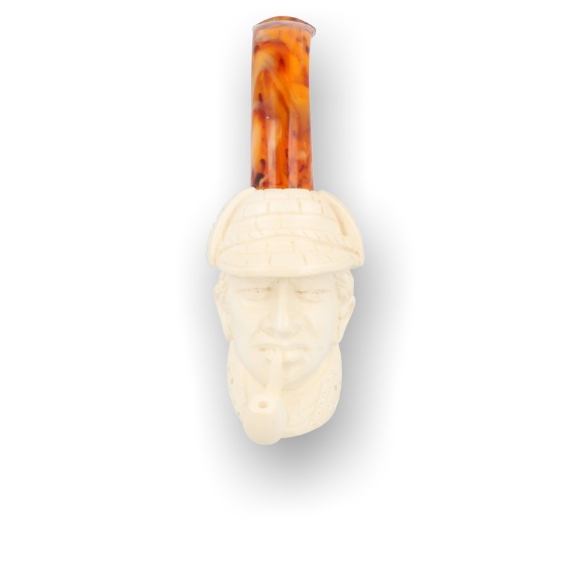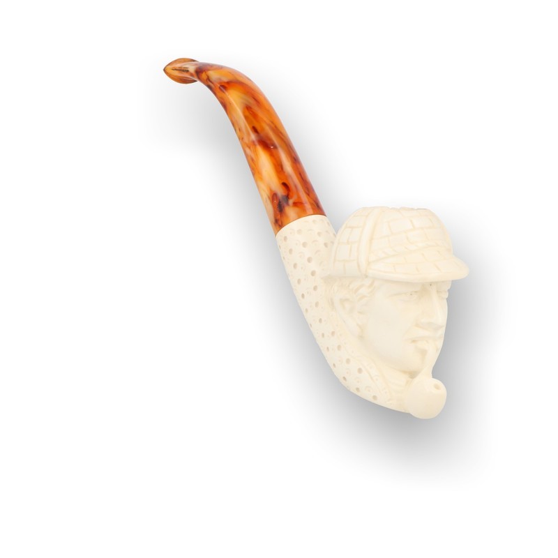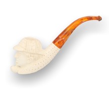 Levent Hand Carved Block Meerschaum Pipe Character Sherlock Holmes Small 108