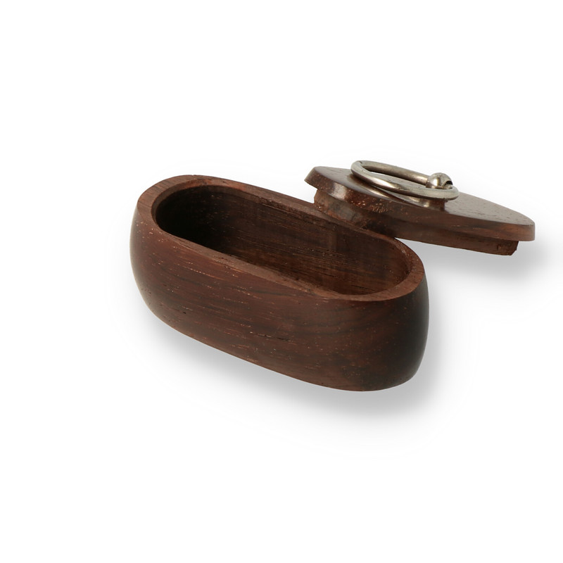 This snuff box is handmade from aged wood with a Nickel ring pull lid