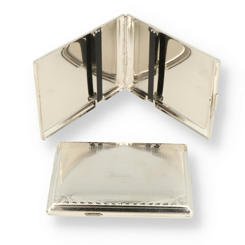 Leather Bound Cigarette Case These handcrafted metal cigarette cases have been expertly crafted from solid nickel in a traditional process. They have elasticised bands to hold the contents securely without damaging them and can be used to store not just cigarettes but business cards or bank cards or anything you like.