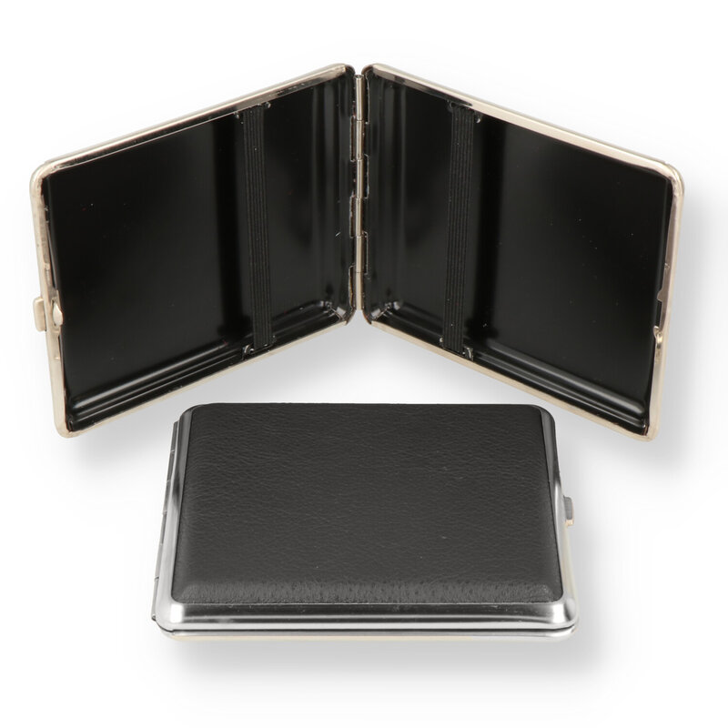 Leather Bound Cigarette Case These handcrafted leather bound cigarette cases have been expertly crafted from solid nickel before being bound in the finest soft leather. They have elasticised bands to hold the contents securely without damaging them and can be used to store not just cigarettes but business cards or bank cards or anything you like.