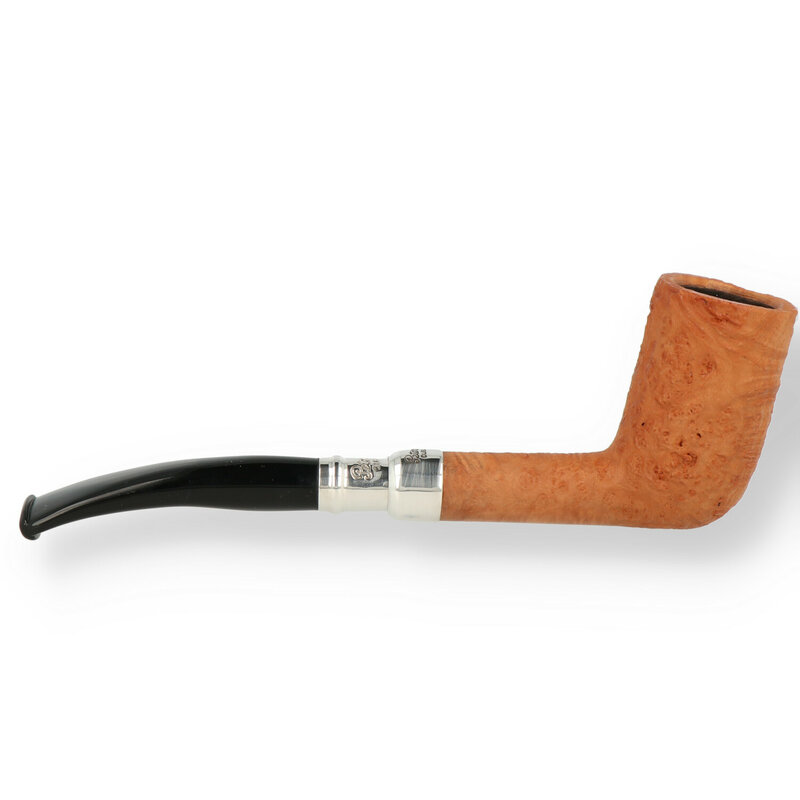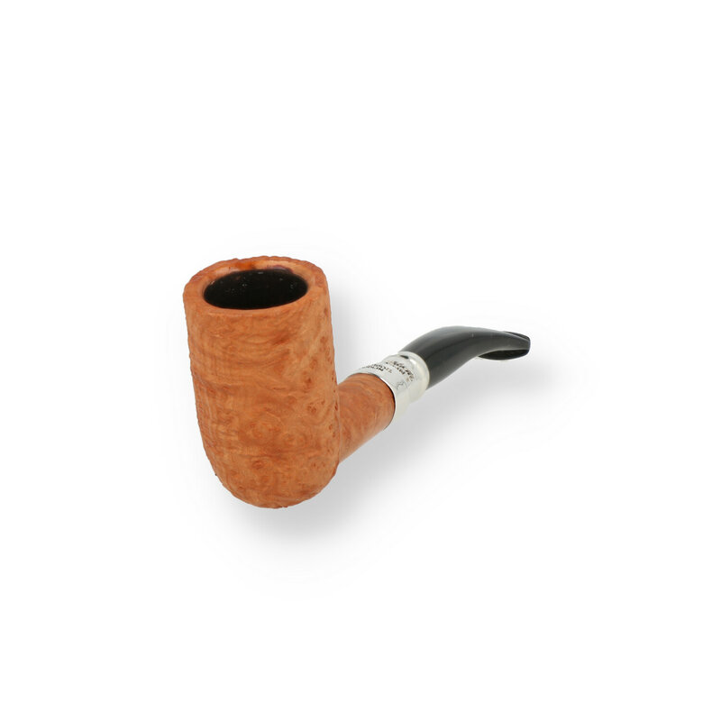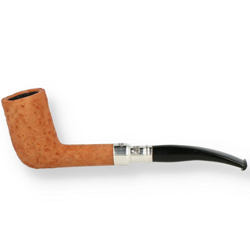 Peterson Barley Spigot Peterson Spigots are notoriously rare and usually take pride of place in any collection. The Spigot evolved on the front lines as soldiers repaired their pipes with spent cartridges. Peterson evolved this into hallmarked sterling silver band and tapered fitting on the stem of a high grade pipe. Like any other wood or organic material, briar often presents a certain degree of colour variation and natural flaws. For the Barley spigot line however this is accentuated by sandblasting and being given a virgin natural finish to show all these flaws in a crisp relief without any additional staining. Given this blank finish, over time, these pipes will continue to darken and patinate to further elevate the natural feel and look of the bare wood
