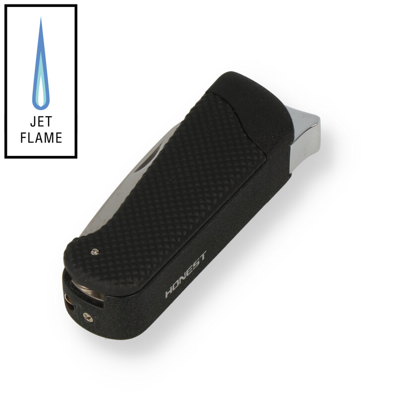 The Honest Danby is a modern contemporary designed lighter with a modern windproof turbo flame and electronic ignition. No flints or batteries to hold you up, just fill with gas and your ready for the evening. The shape is also very comfortable in the hand and easy to ignite, which is great for those cold evenings in the beer garden when the fingers aren't as subtle as they were in front of the fire. Includes a handy bottle opener and 3.5" blade tucked away in the handle Complete with a manufacturers 2 year guarantee and a deluxe gift box.