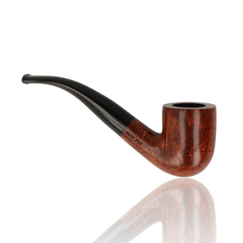 The Bent Pot is an offshoot of the Bent Billiard pipe. Similar is shape it has a shorter bowl. The smooth finish and light stain aids the pipe in showing its beautiful natural grain.