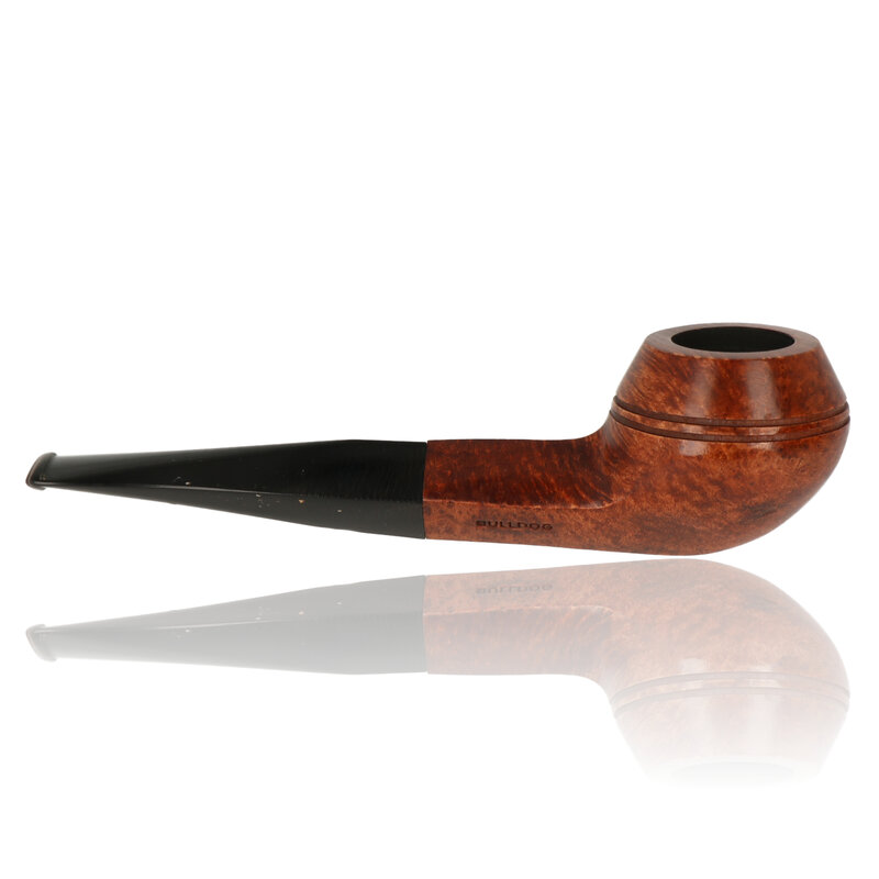 The Bulldog has a square shank and a tapered rim to the bowl. The bulldog shape is often confused with the Rhodesian shape, which has a round shank and a round rim.