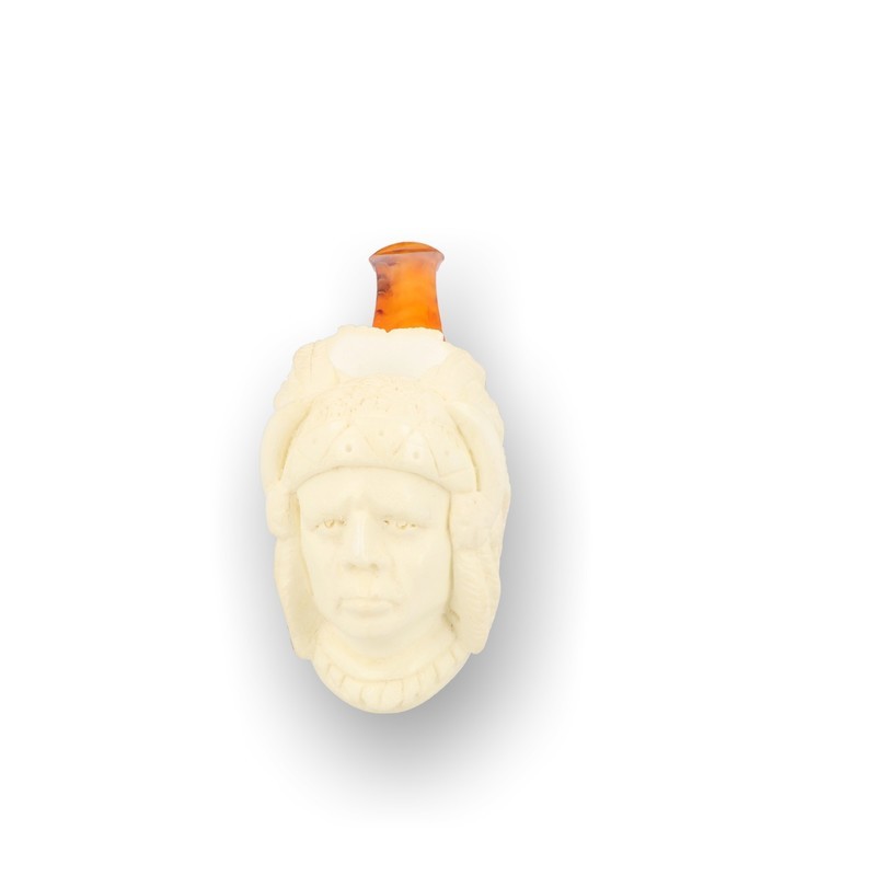 Levent Hand Carved Block Meerschaum Pipe Character Native American 305