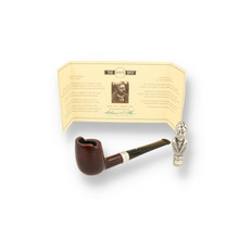The Limited Edition Alfred Dunhill Pipe The Alfred Dunhill pipes have been created and manufactured to celebrate the company founder Alfred Dunhill and his ingenuity as an inventor, visionary, manufacturer and entrepreneur. The Alfred Dunhill pipes are recreations of the famous "windshield" Motorities pipe that were patented in 1904. These versions, modified Billiard shapes (3103) are fitted with with a Sterling Silver bands engraved with the Alfred Dunhill Makers mark placed between Alfred Dunhill's year of birth 1872 and his year of passing 1959 Each pipe is accompanied by an impressive tamper crafted from solid Sterling Silver featuring in great detail Alfred Dunhill's bust. The highly collectable Alfred Dunhill pipes and tampers are presented in a prestigious leather bound book and come with a numbered and hand signed limited edition certificate.