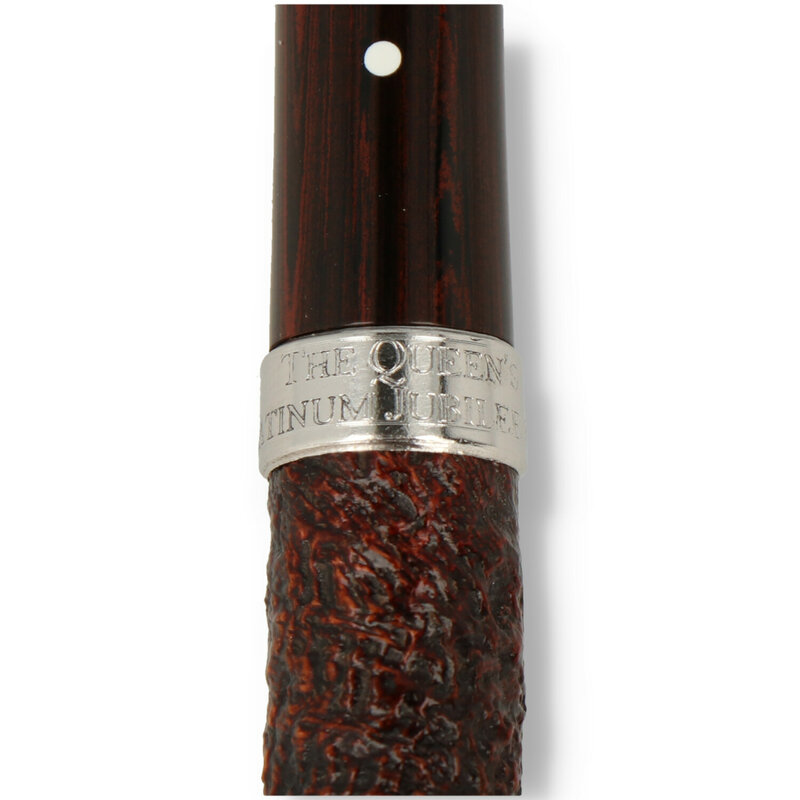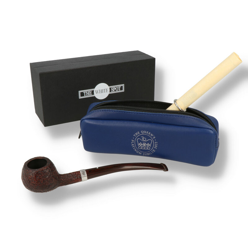 Dunhill White Spot Platinum Jubilee Pipe The limited edition Queen’s Platinum Jubilee 2022 pipes have been specifically created in memory of Her Majesty Queen Elizabeth II and to celebrate the remarkable achievement of her 70-year Platinum Jubilee in 2022. The name of the pipe shape chosen for this edition has a royal connection – after receiving our first Royal Warrant as Tobacconist to Edward, Prince of Wales (the uncle of Her Majesty Queen Elizabeth II), Alfred Dunhill commissioned and named a special Prince shape (old shape 314) after the Prince of Wales (who later abdicated as King Edward VIII). This elegant Prince shape in size group 3 (3407) has been fitted with a 950 Platinum band engraved with THE QUEEN’S PLATINUM JUBILEE 2022, which also was stamped with a special Platinum Jubilee hallmark (in addition to the standard hallmarks) at the London Assay Office. Your pipe is accompanied by a royal blue leather pouch, embossed with the official Platinum Jubilee logo and comes with a numbered and hand-signed limited edition certificate.
