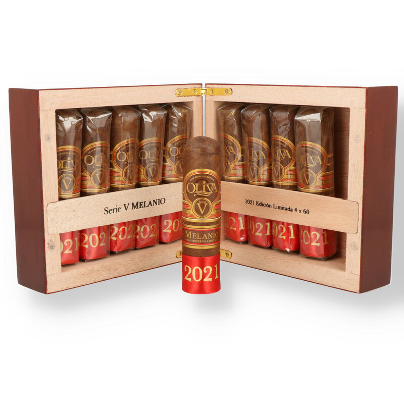 Oliva Serie V Melanio (Natural) The Oliva Serie V Melanio is a limited edition full bodied Cigar that takes pride of place in the Oliva portfolio and is currently one of the most desired Cigars in the world. The Cigar boasts a blend of specially fermented ligero fillers known for their robust and rich flavour. Five years in the making, this special cigar is sure to exceed a premium cigar smoker's highest expectations. The Serie V Melanio is full flavoured yet smooth. The long filler tobaccos are a blend of Oliva Nicaraguan Habano that emphasizes tobacco from the Jalapa region, an area known for a more nuanced leaf than the Esteli and Condega regions. This carefully aged Jalapa blend produces a particularly flavoursome and complex smoke.