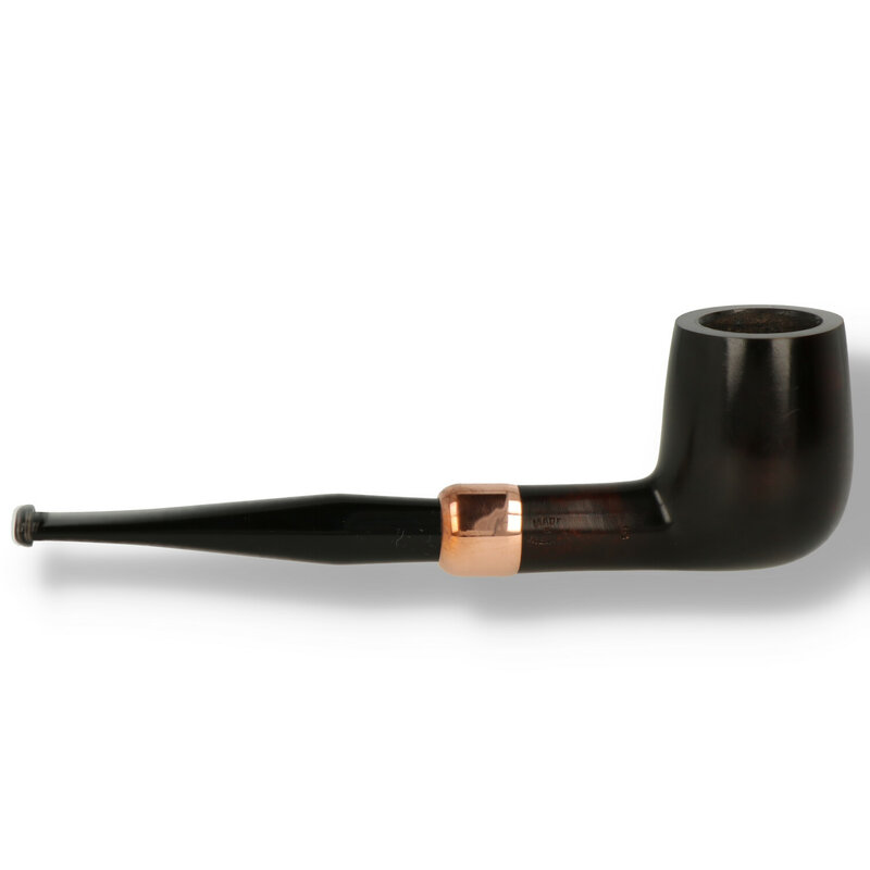 Peterson 2022 Christmas 06 The Peterson 06 is a standard sized pipe with straight billiard shaped bowl. It’s size is large enough to ensure a cool and smooth smoke but remains portable and of a reasonable weight. The bowl is finished in a stunning deep chocolate stain which compliments the copper plated band.
