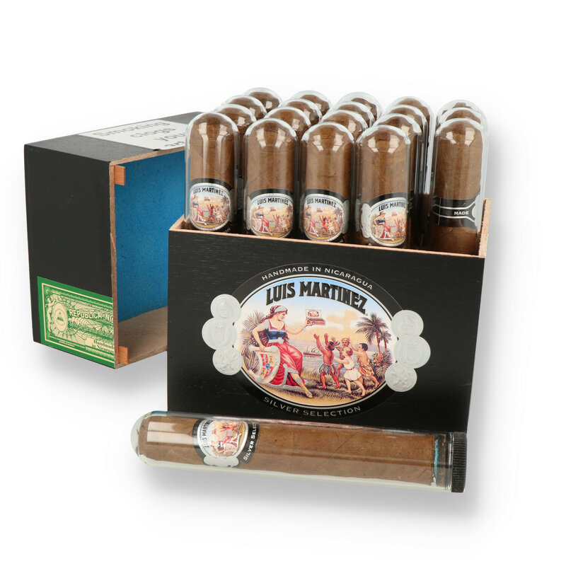 Silver Collection The Silver Selection by Luis Martinez are comprised of 3 year aged Nicaraguan and Honduran long filler tobaccos. This delectable combination accentuates the rich and slightly spicy flavours of the Nicaraguan and the smooth creamy texture of the Honduran tobaccos. Bound with Cuban seed Nicaraguan binder, it is perfectly balanced with a chocolate brown Ecuadorian wrapper.