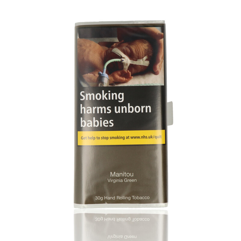 Manitou Viginia Green Hand Rolling Tobacco The Manitou Virginia Green Hand Rolling Tobacco is a premium blend of fine Virginia tobacco sourced from the best growing regions worldwide. All tobacco used is 100% free of any chemical additives, preservatives, humectants and synthetic flavours. No pesticides or herbicides have been used in the growing process. There is no reconstructed sheet tobacco or processed stem for a true quality raw tobacco.