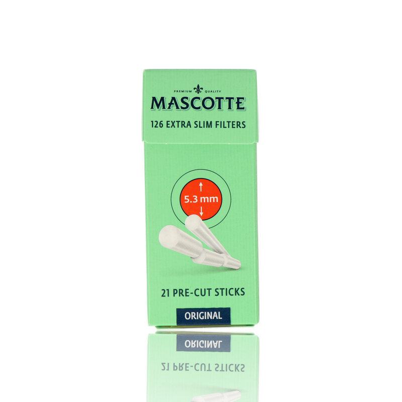Mascotte Extra Slim Cigarette Filter Sticks Probably the most popular cigarette filters size in the world. The Extra slim filters in rod form are the neatest packaging as 6 filters are wrapped in each cellophane tube, which stores neater and if you’re one of these who stores filters in your tobacco you’ll no longer be pulling strands of tobacco from your filter.