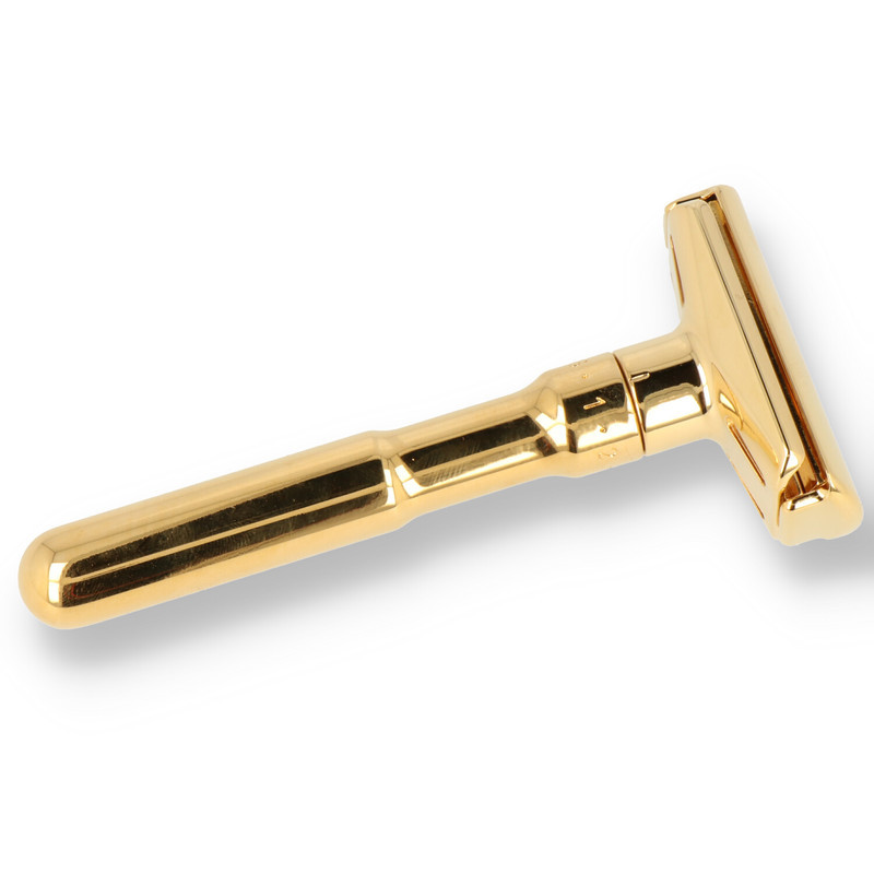 Merkur Futur Razor The Merkur Vision safety razor is Merkers flagship Traditional razor. The highest grade, lightweight, Solingen Stainless steel is precision engineered to a standard rarely seen in the modern day before being plated in a substantial 24k Gold coating. And being the Germans this is no flimsy coating! Words simply can't explain the smooth action and seamless construction evident on this razor. The blade height is adjustable for stubborn beard growth and the razor smoothly unscrews for blade replacement.