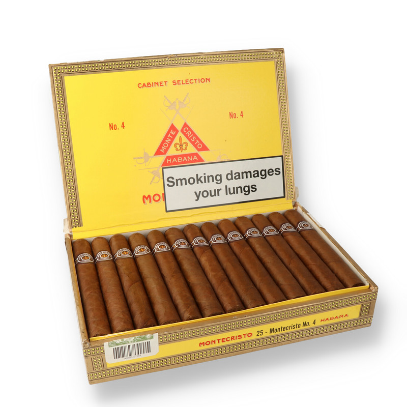 A branded, Cedar box containing 25 loose, Montecristo No 4, Cuban cigars! THE MOST POPULAR CIGAR IN THE WORLD