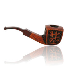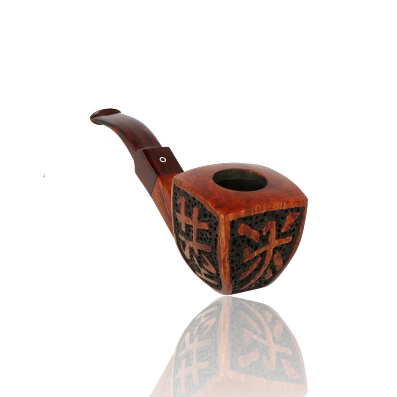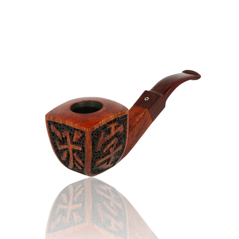 The oriental is a generously sized pipe carved from a single piece of briar, The extra thick walls of the squared bowl have been given a sandblast finish with an Oriental design relief, this transitions into a squared shank and saddle stem, the extra thick walls providing a cool and dry smoke.