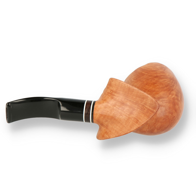 Hand Made Ebonite Stem: Ebonite is the premium material of choice for pipe stems. It is softer on the teeth than Acrylic but does not yellow or stain as easily as Vulcanite. Each one is hand crafted to fit the unique shapes that Michal Novak creates.