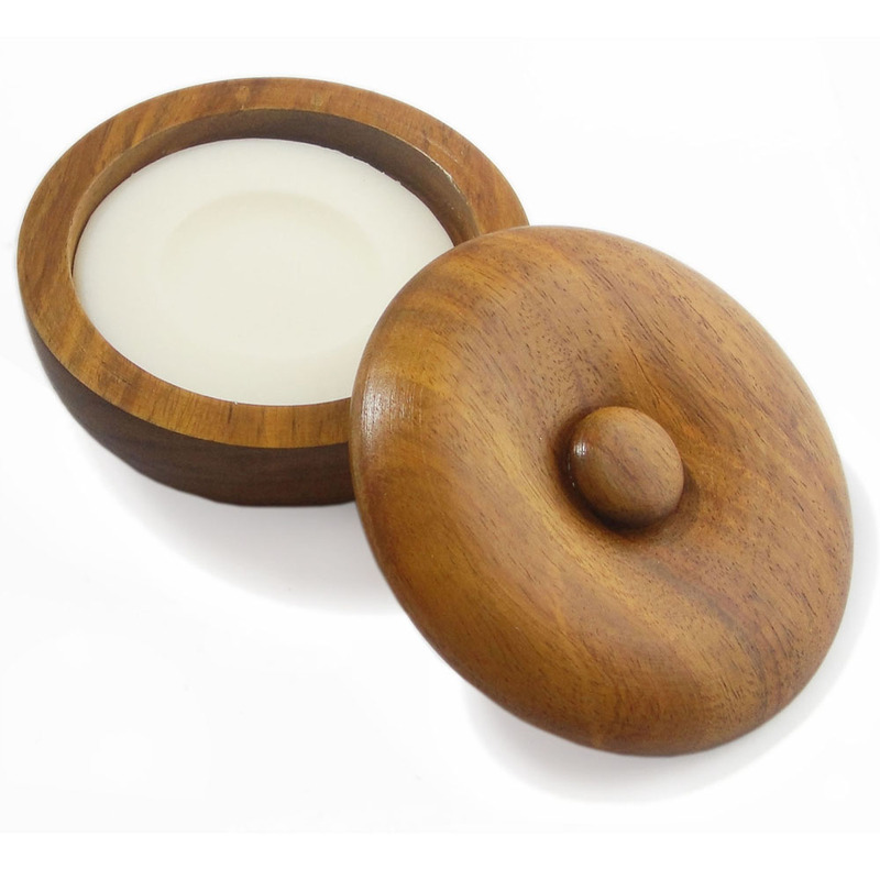 A medium sizes solid wood shaving bowl and matching grained lid complete with a block of Old English luxury shaving soap. We shall be listing soap block refills on our website in the near future. If you do not see it listed on the website please contact us via email or phone and we shall gladly arrange to send you a refill.