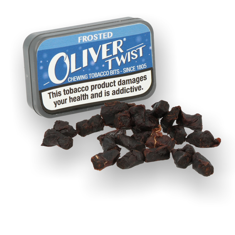 The Oliver Twist Frosted contains on 7 grams (average 30 pieces) of cooling Spearmint flavoured chewing bits.