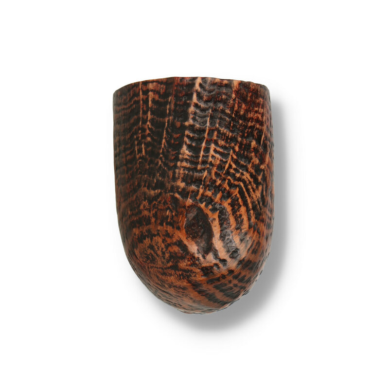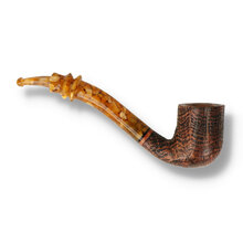 A handmade Italian briar pipe by Paronelli, the Petite Bent Freehand features a rich sandblast finish, tall bowl, and amber-toned acrylic stem — a graceful design for shorter smokes.