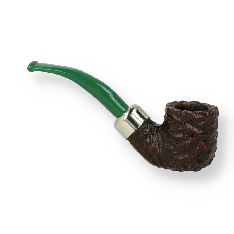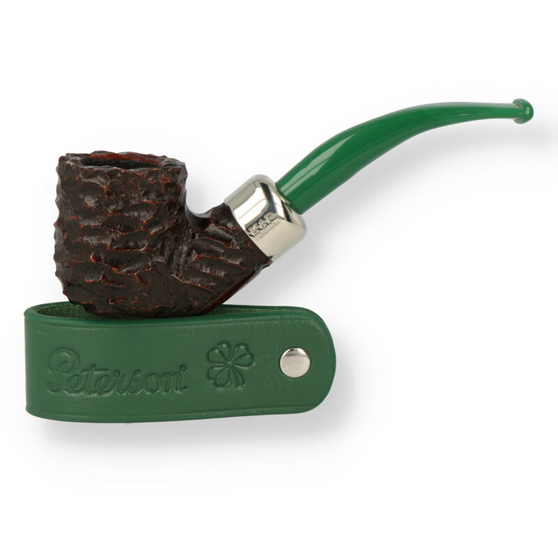 Peterson 2022 St Patrick's Briar Pipe The Peterson St Patrick's Day series is Peterson's longest standing annual offering. First released in 1998, the St Patrick's day line presents a plethora of their most popular shapes in a distinctly Irish colour palette. The 2022 version celebrates their Irish heritage with rich earthy browns and an Emerald green acrylic mouthpiece. Each pipe has been expertly rusticated, finished with a bright Nickel band and is accompanied by the classic Peterson carry pouch and a matching green leather pipe stand.