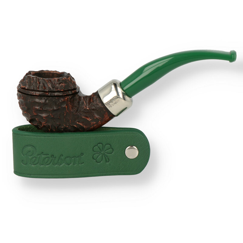 Peterson 2022 St Patrick's Briar Pipe The Peterson St Patrick's Day series is Peterson's longest standing annual offering. First released in 1998, the St Patrick's day line presents a plethora of their most popular shapes in a distinctly Irish colour palette. The 2022 version celebrates their Irish heritage with rich earthy browns and an Emerald green acrylic mouthpiece. Each pipe has been expertly rusticated, finished with a bright Nickel band and is accompanied by the classic Peterson carry pouch and a matching green leather pipe stand.