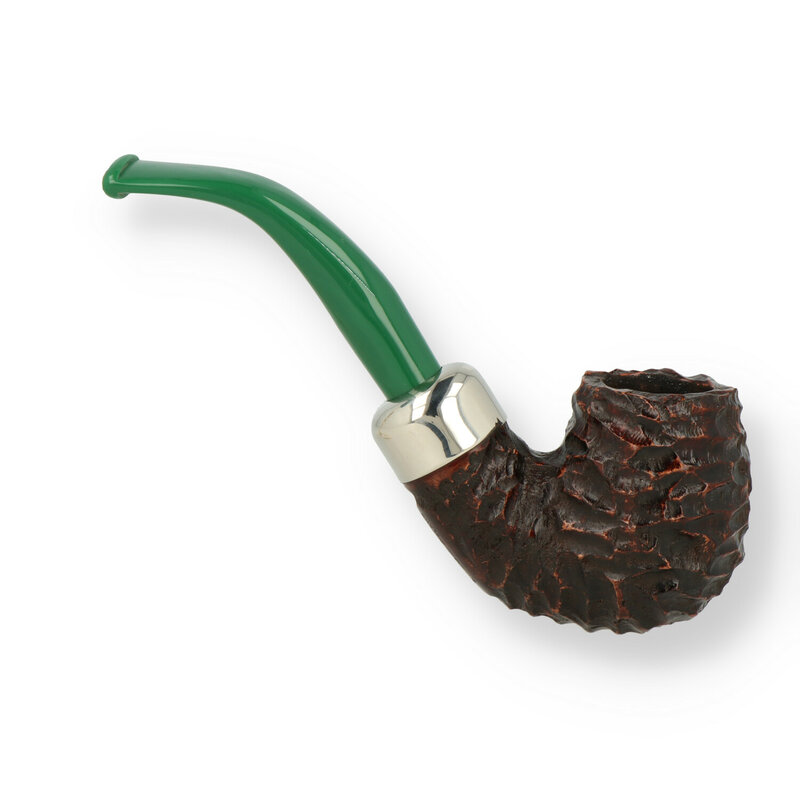 Peterson 2022 St Patrick's Briar Pipe The Peterson St Patrick's Day series is Peterson's longest standing annual offering. First released in 1998, the St Patrick's day line presents a plethora of their most popular shapes in a distinctly Irish colour palette. The 2022 version celebrates their Irish heritage with rich earthy browns and an Emerald green acrylic mouthpiece. Each pipe has been expertly rusticated, finished with a bright Nickel band and is accompanied by the classic Peterson carry pouch and a matching green leather pipe stand.