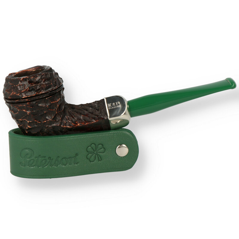 Peterson 2022 St Patrick's Briar Pipe The Peterson St Patrick's Day series is Peterson's longest standing annual offering. First released in 1998, the St Patrick's day line presents a plethora of their most popular shapes in a distinctly Irish colour palette. The 2022 version celebrates their Irish heritage with rich earthy browns and an Emerald green acrylic mouthpiece. Each pipe has been expertly rusticated, finished with a bright Nickel band and is accompanied by the classic Peterson carry pouch and a matching green leather pipe stand.