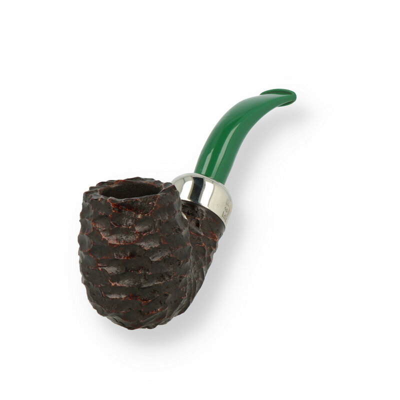 Peterson 2022 St Patrick's Briar Pipe The Peterson St Patrick's Day series is Peterson's longest standing annual offering. First released in 1998, the St Patrick's day line presents a plethora of their most popular shapes in a distinctly Irish colour palette. The 2022 version celebrates their Irish heritage with rich earthy browns and an Emerald green acrylic mouthpiece. Each pipe has been expertly rusticated, finished with a bright Nickel band and is accompanied by the classic Peterson carry pouch and a matching green leather pipe stand.