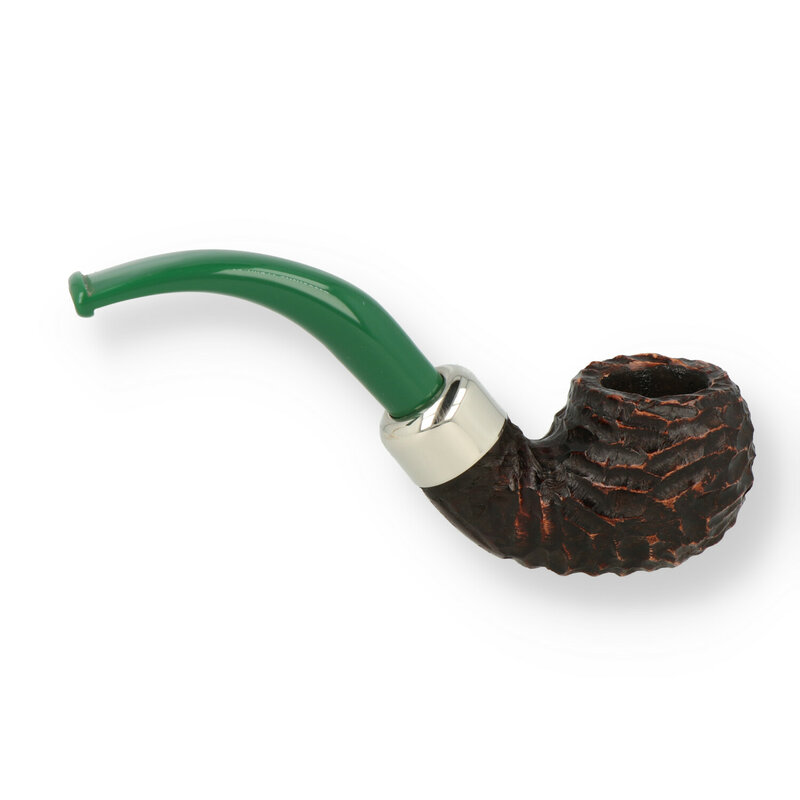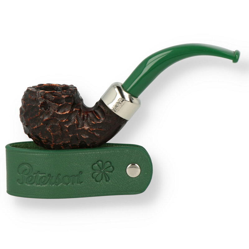 Peterson 2022 St Patrick's Briar Pipe The Peterson St Patrick's Day series is Peterson's longest standing annual offering. First released in 1998, the St Patrick's day line presents a plethora of their most popular shapes in a distinctly Irish colour palette. The 2022 version celebrates their Irish heritage with rich earthy browns and an Emerald green acrylic mouthpiece. Each pipe has been expertly rusticated, finished with a bright Nickel band and is accompanied by the classic Peterson carry pouch and a matching green leather pipe stand.