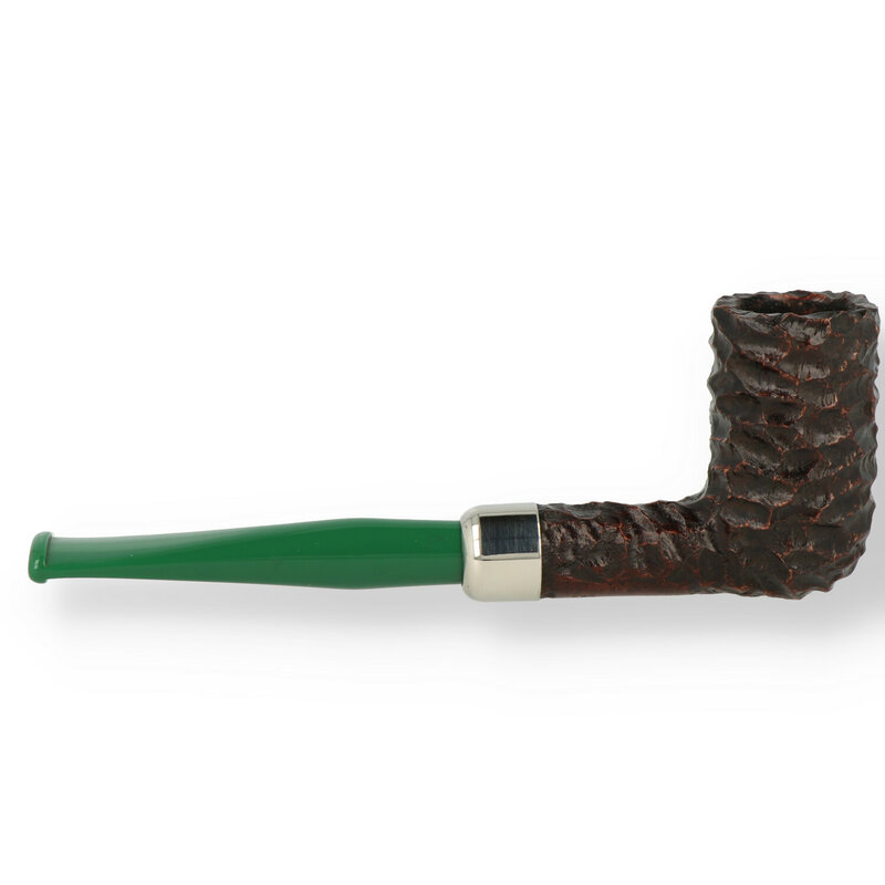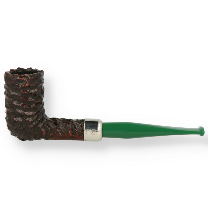 Peterson 2022 St Patrick's Briar Pipe The Peterson St Patrick's Day series is Peterson's longest standing annual offering. First released in 1998, the St Patrick's day line presents a plethora of their most popular shapes in a distinctly Irish colour palette. The 2022 version celebrates their Irish heritage with rich earthy browns and an Emerald green acrylic mouthpiece. Each pipe has been expertly rusticated, finished with a bright Nickel band and is accompanied by the classic Peterson carry pouch and a matching green leather pipe stand.