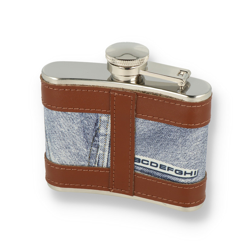 Peterson Denim Jeans Bound Hip Flask These elegant Denim finished hip flasks make the perfect gift for any gentleman. With a Stainless Steel body and unusual denim wrap that makes the perfect camouflage when wearing jeans. they are perfect for outdoor (and indoor) pursuits.