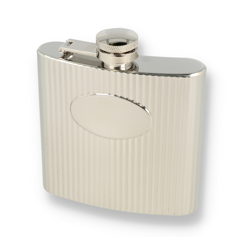 Peterson Leather Bound Hip Flask These elegant lined design hip flasks make the perfect gift for any gentleman. With a Stainless Steel body and oval engraving plaque, they are perfect for outdoor (and indoor) pursuits.