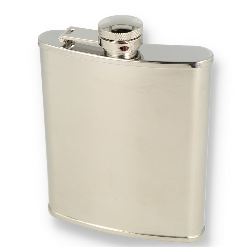 Peterson High Polished Chrome Hip Flask These elegant polished hip flasks make the perfect gift for any gentleman. With a Stainless Steel body and high polished chrome finish, they are perfect for outdoor (and indoor) pursuits.